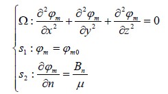 對于永磁電機(jī)的空載工況因求解區(qū)域不存在電流,依據(jù)恒定磁場下的麥克斯韋微分方程組,軸向磁場永磁發(fā)電機(jī)內(nèi)的電磁場可以按照恒定磁場處理,其磁場問題的數(shù)學(xué)形式可用如下的標(biāo)量磁位拉普拉斯方程來描述。