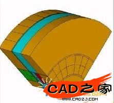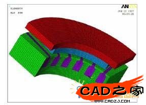 眾所周知電機(jī)的三維電磁場分析將占用巨大的計算資源,因而在能夠滿足工程計算精度的要求下,合理簡化計算模型顯得尤為重要。在ANSYS 中利用周期對稱邊界條件,為電機(jī)建立一個磁極范圍的模型,利用軸向?qū)ΨQ性將一個磁極范圍的模型再簡化為一半,得到電機(jī)八分之一計算模型,從而大幅減少了計算量,縮短了計算時間和設(shè)計周期。為準(zhǔn)確模擬磁場在空氣中的衰減,在其徑向邊界外側(cè)建立了空氣模型,包含空氣邊界的實(shí)體模型如圖3所示,定、轉(zhuǎn)子鐵心和磁極的實(shí)體模型如圖4所示,從圖中可以看出該電機(jī)三維模型的復(fù)雜程度。