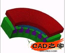 本文采用 APDL 語言進(jìn)行二次開發(fā),編制了加周期邊界條件的算法、宏命令及調(diào)用宏命令時外部參數(shù)的傳遞技術(shù),程序可以自動完成周期對稱面上節(jié)點(diǎn)位置的判斷,節(jié)點(diǎn)的選擇,自動耦合選出的節(jié)點(diǎn)對,大大增加了程序的通用性。該電機(jī)1/8 三維模型施加周期邊界條件的處理如圖6 所示。