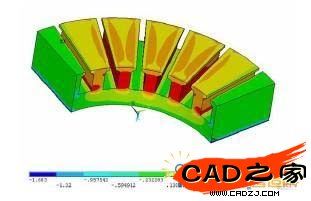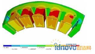 軸向磁場永磁電機(jī)的結(jié)構(gòu)和傳統(tǒng)電機(jī)有很大的區(qū)別,其顯著特點(diǎn)是定子和轉(zhuǎn)子是環(huán)型結(jié)構(gòu),電樞繞組的有效導(dǎo)體在空間呈徑向輻射分布,線負(fù)荷隨著半徑的增加而減小;磁路的飽和程度也不一樣, 在內(nèi)圓附近是齒飽和,而在外圓附近是軛飽和。軸向磁場永磁電機(jī)內(nèi)部介質(zhì)交界面曲直交錯,各部件材料的磁性能各異,這些特點(diǎn)都給電機(jī)的設(shè)計帶來困難,其磁場分布嚴(yán)格來講是三維的,需通過求解三維場的方法來精確計算磁場的分布。本文應(yīng)用大型有限元分析軟件ANSYS的電磁模塊對軸向磁場永磁發(fā)電機(jī)進(jìn)行三維靜磁場和空載工況分析,從而得到該電機(jī)的磁場分布和空載工況的性能計算結(jié)果,并對磁極形狀進(jìn)行優(yōu)化設(shè)計,最終得到正弦度高的空載反電勢波形。