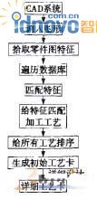 調入CAD系統的圖形,拾取零件圖的特征,然后通過掃描、搜索、遍歷特征數據庫,給零件特征匹配相應的特征,然后給零件的特征匹配合適的加工工藝步驟,在此步完成后,給各個特征的加工工藝步驟按照一定的規則排序,初步生成加工工藝卡,然后通過人機交換界面對之必要的修改,生成詳細工藝卡,生成流程見圖4。