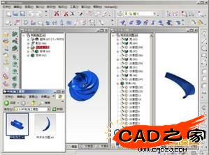 首先,在目錄中將葉輪加工模型拖動到軟件造型環境中,從圖4中左邊圖的右下角,可以看出打開的模型文件是零件模型,但它卻又是裝配模型,因為實際生產中設計人員需要對葉輪加工模型中的葉片進行修改;而制造人員只是需要修改后的葉輪加工模型文件。
