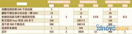 本程序適用于白車身所有需要設(shè)計修邊線的沖壓件,在大型復雜沖壓件上所體現(xiàn)的效率尤為明顯。以圖4所示的某車型發(fā)動機罩外板為例,一半的翻邊線長度為2500mm,如果要得到一條精確的修邊線就需要300~500個點,手工繪制的繁瑣程度可想而知。以作300個修邊點為例(見表),對手工繪制和使用本程序自動化設(shè)計的效率做了一個對比。