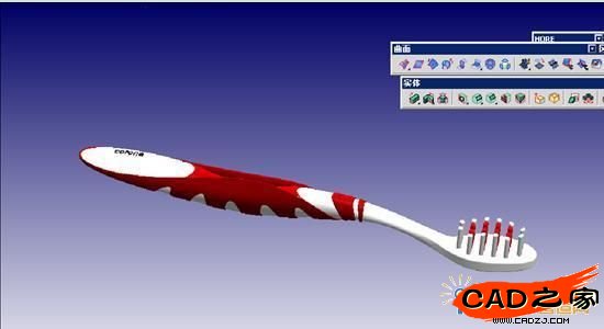 牙刷是我們日常生活中必不可少的生活用品。牙刷需求量非常大,生產的企業也特別多,其產品競爭非常激烈。而漂亮的外形是牙刷吸引客戶的首要因素。這就決定了牙刷外形設計占有非常重要的地位。因此流暢的曲面設計,模型的快速修改,產品的多樣化設計是我們企業進行三維設計軟件選型時必須考慮的。Extech公司擁有自主知識產權的TDstyling無疑是牙刷設計的極佳選擇。其混合建模、交互建模、曲面模塊、全局建模,是我們進行產品設計的最佳利器。下面就牙刷設計的一個實例(實物由5A牙刷公司提供),來說明TDstyling在牙刷產品設計的整個流程中的典型應用。