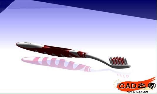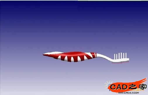4.在牙刷主體建好以后,添加其他紅色的橡膠部分,效果如圖(實施渲染模式下)所示,整個牙刷的建模就基本告成。如圖41三維模型