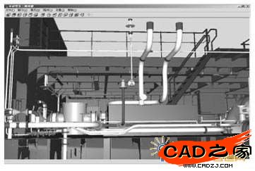 4、管系設(shè)計系統(tǒng)。該系統(tǒng)是以船舶管系設(shè)計以及其他行業(yè)的管路設(shè)計為對象進行開發(fā)的,提供交互管系布置界面,建立三維管系模型(見圖2),具有很強的實用性。