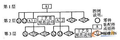 縱向來看,BOM以層次結構組織和管理數據,其中存放了從最終產品到中間部件,直至其組成零件的所有信息。EBOM所表達的產品結構如圖l所示,對于圖中每個裝配件或組件,都有單獨的EBOM分別描述。