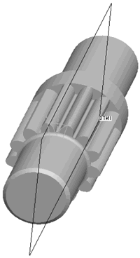 圖4所示實(shí)例是一齒輪軸的模型,軸上的齒形屬于典型的草繪型特征旋轉(zhuǎn)陣列。該旋轉(zhuǎn)陣列是在齒形的剪切特征的基礎(chǔ)上進(jìn)行陣列而成的。在創(chuàng)建第一個(gè)齒形的剪切主特征時(shí),必須先創(chuàng)建一個(gè)帶角度位置尺寸的內(nèi)部參照基準(zhǔn)平面DTM1(如圖5),然后進(jìn)入草繪界面。草繪的截面如圖6所示,值得注意的是,草繪的參照基準(zhǔn)平面建議只選DTM1,這樣可以避免草繪截面產(chǎn)生過多的約束,減少陣列的失敗率。完成上述過程后,就可以DTM1的角度尺寸為驅(qū)動尺寸陣列了。