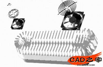 我們期望得到的動畫效果包含的信息有 :整機的裝配過程以及模擬風扇的工作狀態(tài),同時也展示主要零件的大致外形特征。這些正是供應(yīng)商、生產(chǎn)部門與客戶都關(guān)注的。顯然工程圖樣無法表達這些信息,實體裝配文件也不具備動畫的動態(tài)演示動能。在該裝配中首先裝入的零件是面殼散熱器,需要把它與裝配文件的三個基準面的關(guān)系全部定義,然后依次裝入其他子組件及零件。因為要輸出風扇的運動狀態(tài),所以扇葉的裝配連接需特別處理,以便定義伺服電動機。