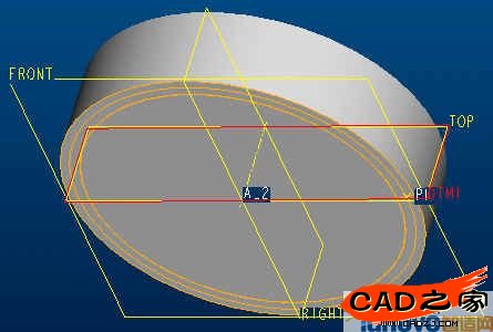 FRONT平面為草繪平面,進入草繪模式后按“使用邊”命令選取直徑等于da的圓創建拉伸截面;