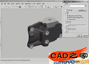 讓我們先來看看最新的Pro/ENGINEER Wildfire野火版2.0版中的模擬模塊在外觀和功能上的一些改變:最引人注目的首先是模擬用戶界面的改進,指定模型類型這一典型的先期任務現已移到了一個對話框中,使此操作比以前版本更簡單(如圖1所示);其次,Pro/ENGINEER Wildfire野火版2.0中的菜單管理器也脫離了用戶界面,這意味著Pro/ENGINEER 窗口可占用整個桌面,使命令訪問變得更直接、更簡單(如圖2所示);另外,在選取功能方面的改進包括選取對象操作參照以及選取操作的簡化,用戶可以方便的創建約束條件(如圖3所示);最后,如果用戶想更改工作模式,例如切換到 FEM 模式,只需編輯模型類型即可(如圖4所示)。