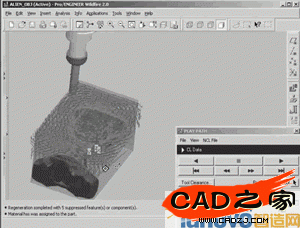 Pro/ENGINEER Wildfire 野火版2.0還有許多與制造相關的新功能可以幫助用戶計劃生產過程。使用它,制造部門的用戶可以充分利用先進的繪圖功能,該功能通過移去標準工具和整體工具的線路,提供了遮擋加工仿真。Pro/ENGINEER Wildfire 野火版2.0 提供了模具制造者的專用功能,它能直接輸入、操作和加工STL(標準模板庫)數據和新的拋光刀路軌跡,它能一次快速完成深淺不同的加工。對于有機形狀,模型可與坯件模型一起載入、裝配,并直接使用粗加工、重新粗加工和精加工刀具路徑進行加工。在“VERICUT for Pro/ENGINEER”中,粗加工過程的可視化充分展示了高速加工策略和“額外層切面”計算的優點,可最大程度地降低進行額外重新粗加工的幾率(如圖9所示)。STL 加工還可用于工程化零件,例如電池的外殼。精加工也使用了類似此“S 形連接”連續螺旋銑削的高速加工方法。如果用戶想快速生成機械加工原型,而又不想在原型最終完成之前在重新造型小平面數據上浪費時間,此功能特別有用。