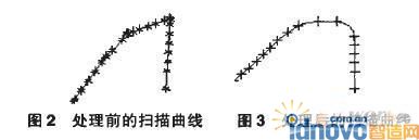 點擊工具欄里的圖標(biāo)可以對已經(jīng)自動擬合的掃描曲線進行修改。選中掃描曲線,彈出[修改掃描]菜單,可對掃描曲線進行相應(yīng)地連接、斷開、刪除和重組等操作。在[修改運動]對話框中點擊[接受]按鈕即完成了對掃描點的修改。通過以上對數(shù)據(jù)的直接處理,即可獲得令人滿意的掃描曲線集。圖2和圖3為處理前和處理后的掃描曲線。