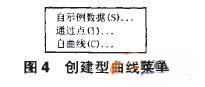 掃描曲線不能直接生成曲面,要通過復(fù)制掃描曲線的方法來獲得型曲線。點擊菜單欄里的[幾何]/[曲線]命令,彈出如圖4所示的菜單。[自示例數(shù)據(jù)]:選中掃描曲線即可將其復(fù)制成型曲線。[通過點]:根據(jù)所選擇的若干個掃描點創(chuàng)建型曲線。[自曲線]命令項中有2種生成型曲線的方法:(1)依據(jù)給定的點數(shù)生成型曲線;(2)依據(jù)給定的允許公差范圍生成型曲線。
