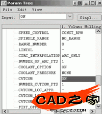 CUTCOM設置為ON是將刀具補償功能打開,系統計算刀具加工軌跡時,不按刀具中心計算,而是按零件的輪廓值計算;LEAD IN和LEAD OUT均設為YES,是為了刀具在逼近零件輪廓時有一定距離加入和取消刀具半徑補償值,而這一距離是由LEAD—RADIUS的值給定的,為了在加工中不產生過切現象,LEAD—RADIUS的值一定要大于刀具半徑值。