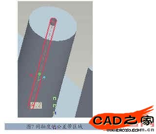 類(lèi)似作一個(gè)同軸度的公差帶顯示,加載完同軸度的UDF后,Pro/ENGINEER的提示框和左邊的模型樹(shù)會(huì)顯示創(chuàng)建的組,如圖5和圖6所示,模型中的同軸度公差帶如圖7所示。