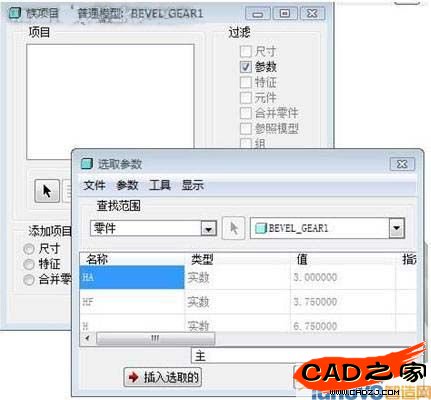 在特征參數中確定設計變量,Z:直齒錐齒輪齒數;M:直齒錐齒輪模數;Z_ASM:配合齒輪的齒數(分度圓錐角δ需要由Z和Z_ASM來確定);CX徑向間隙系數;HAX齒高系數;B齒寬;X變位系數等。