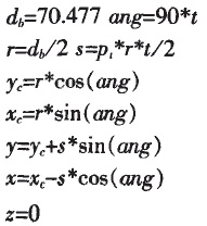 插入基準曲線按鈕,彈出菜單管理器,選擇“從方程”,單擊完成,彈出窗體,選取坐標系PRT-CSYS-DEF,坐標系類型定義選擇笛卡兒坐標系:定義方程,在彈出的記事本中輸入以下漸開線方程并保存。