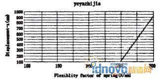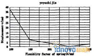 圖4頂梁前端點的垂直位移隨彈簧剛度的變化曲線圖。