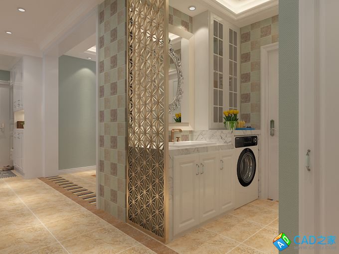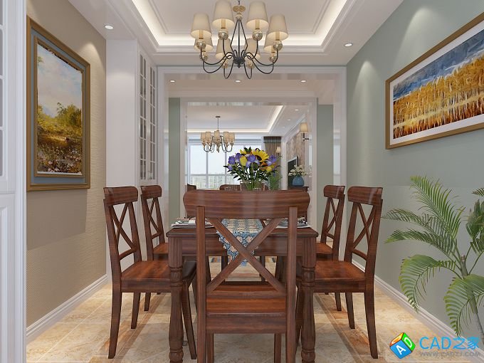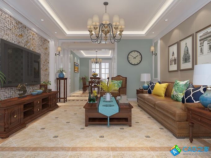三室兩廳兩衛美式風格施工圖+效果圖+客廳模型下載