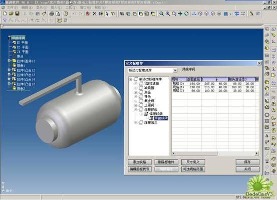 在這個產品設計過程中,建立了一個企業的標準件庫,同時建立了多個常用的通用件子庫,主要包括:Y型過濾器、減震器、變徑、彎頭、截止閥、止回閥、焊接球閥及連接法蘭。每個子類標準件均根據需要定義了不同尺寸規格的標準件。