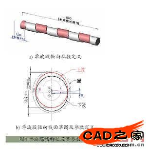 ③提取“上波”輪廓,以此為基圓,制作一螺旋線為路徑,穿透該螺旋線做一寬度為二分之一導程的截面,用“掃描切除”命令去除“下波”圓柱中多余的材料。