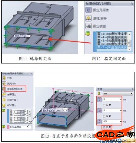 ,在圖示區(qū)域分別單擊U盤接口的上下外表面及U盤連接線接口彈片的內表面,按如圖14所示設置,設置后單擊“確定”按鈕