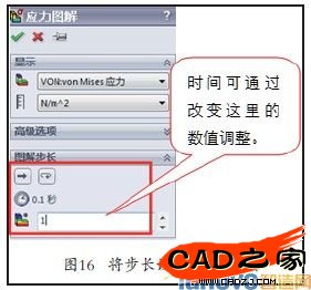 2)雙擊“應力1 (-von Mises-)”以顯示圖解。右擊,在快 捷菜單中單擊“編輯定義”,如圖16所示設置,單擊“確定” 按鈕