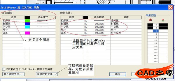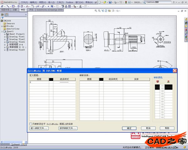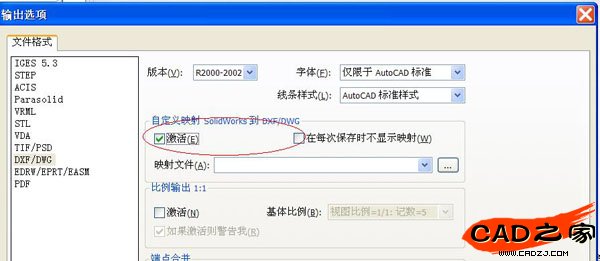 3、然后在點擊“確認(rèn)”—“保存”后就會彈出“SolidWorks到DXF/DWG映射”窗口