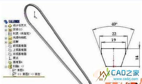 讀者可以使用掃描的方式完成三角帶的建立,如圖7所示。