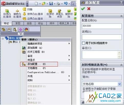 2)在“零件1配置”上單擊右鍵,“添加配置”,輸入新配置的名稱,這里我用銷軸的直徑X長度來命名。m.super-win.com.cn Cad之家(提示:配置名稱里不允許出現(xiàn)“/”和“@”字符。)如圖3