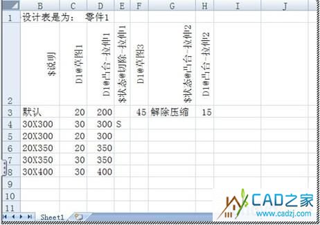 (提示:技巧1:現(xiàn)在在表格中顯示的都是D1、草圖1、拉伸1等沒有意義的名字,為了更好的辨識,最好在創(chuàng)建表格之前為尺寸、草圖和特征重新命名為有意義的名字。技巧2:手動輸入變量參數(shù)和在模型中選取變量都不是特別方便,因此建議在生成Excel設(shè)計表之前,先手動添加一個配置,將變量參數(shù)都包括在內(nèi),然后再使用Excel設(shè)計表,這樣就可以自動添加需要的變量參數(shù)了。)