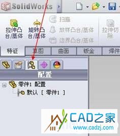 3)同樣,使用“配置特征”命令可以控制特征在不同配置中的狀態(tài)。