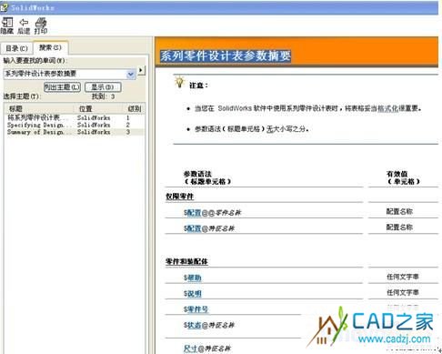 表格中A列是現(xiàn)有的配置, 第2行是零件的變量,這些變量遵循一定的格式。關(guān)于格式可以參考SolidWorks幫助-搜索“系列零件設(shè)計表參數(shù)摘要”。如圖14