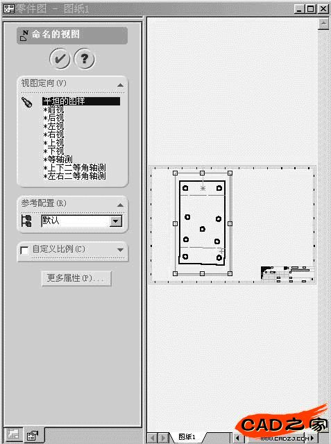 4.3單擊插入→工程視圖→命名視圖,在PropertyManager中選取平坦圖樣,將視圖移動到圖紙范圍的適當位置,完成工程圖,如圖8所示。