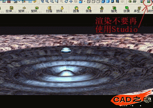 點擊按鈕打開Studio進行初步的渲染嘗試,我這里選擇了漸變的環境。Studio里面包括幾套已經做好的光源和背景,可以大大簡化渲染步驟。我們看渲染效果,水池太亮,水也不透明。