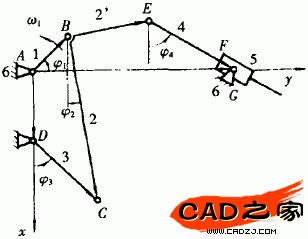 =600mm,φ1=45°,BE⊥BC,AF⊥AD,曲柄1的等角速度