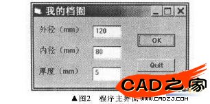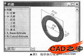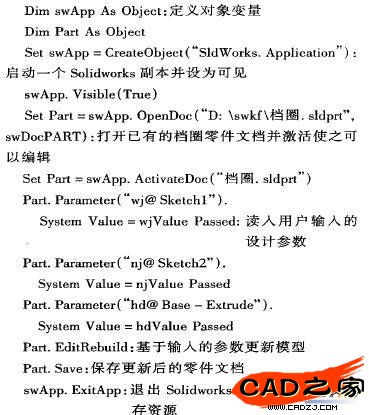當然,對于繪制"檔圈"這樣的標準件程序中應對輸入的參數范圍加以限制,確保其繪圖參數符合國標。此處程序代碼未對這一問題加以處理,重在講解VB與Solidworks的通訊。
