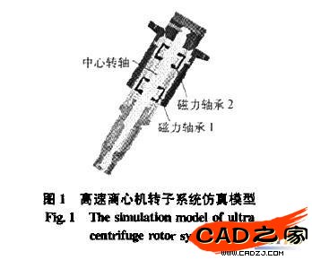 離心機的提純精度受轉子轉速的限制,而軸承的承載能力又是選用高性能的動力驅動設備的一個瓶頸條件。由于傳統的滾動軸承承載能力有限,以期離心機的轉子系統能達到更高轉速,用永磁軸承來替代傳統的滾動軸承,是解決該問題的一個具有研究潛力的方法。用永磁軸承支撐的離心機轉子主軸系統如圖1所示。永磁軸承的結構具有徑向和止推的雙向作用。根據目前國內外對磁性材料的研究,永磁軸承的定子和轉子材料選用稀土釹鐵硼(NeFeB)高強度的永磁材料。