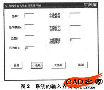 系統(tǒng)界面供用戶進(jìn)行齒輪參數(shù)的輸人(見(jiàn)圖2)