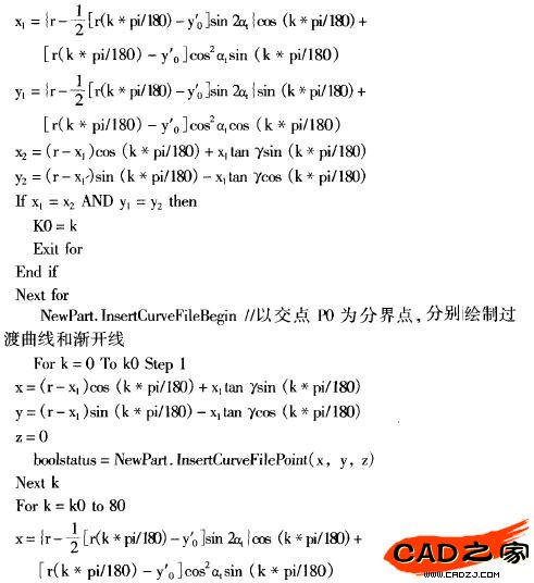 For k = 0 to 80 step 1 //確定漸開線與過渡曲線的交點PO