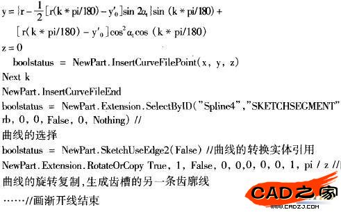 大齒輪齒廓線是由漸開線和過渡曲線2部分組成,其形成代碼如下: