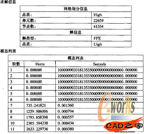 具體對COSMOS/Works6.0的頻譜分析,首先要對研究的項目進行性質定義。由于是進行譜分析,即求解問題的特征值,不需外加各種約束我們對QKS17-2000-01外殼零件進行了兩次分析,第一次選擇材料2014Alloy,第二次選擇2018Alloy兩次分析的結果如下: