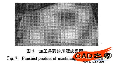 用5-UP5/PRPU并聯機床實際樣機在石蠟坯料上進行了球冠的銑削實驗,銑削刀具采用X16的球頭銑刀。結果表明效果較好,實現了對復雜曲面的五坐標加工,實際加工得到的球冠成品精度較高,如圖7所示。