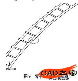 建模過程中可以發現有些按照原施工圖紙繪出來的結構構件裝配不起來,如在繪編號為ARC-009的一福析架時,就會出現裝配誤差,如圖9所示。如果鋼結構構件的幾何尺寸按照圖紙上的幾何尺寸生產加工,在不考慮加工誤差的情況下,同時不考慮結構受力影響,則SolidWorks的裝配過程完全真實模擬了結構安裝的情形,圖9就表明了以上三福析架最終的安裝結果。如果在考慮加工誤差的情況下,同時考慮結構受力影響,則三榀桁架的安裝結果一般會出現更大的安裝誤差。這表明,二維設計圖、二維施工圖只是較好表達了設計、施工的某些需要,幾乎沒有考慮結構安裝所必需的精確幾何特征,因此幾乎無法預測安裝誤差。本文建立的結構的三維實體模型叮以有效地完成結構安裝的數值模擬過程,這正是實體建模的重要優勢之一。