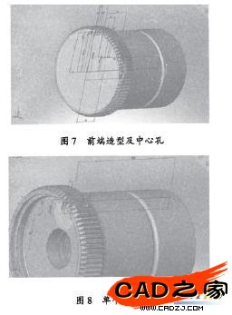 4)選擇基準面,繪制草圖,利用旋轉(zhuǎn)切除功能,生成異形零件前端造型及中心孔;選擇基準面,繪制草圖,利用旋轉(zhuǎn)切除和陣列功能生成工作孔;見圖7.8.