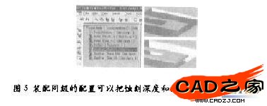 SolidWorks允許對特征進(jìn)行陣列,這節(jié)省了設(shè)計(jì)師的時間并簡化了模型的構(gòu)建。凸臺和切口是兩個能夠在一個零件里陣列的特征。陣列可以通過直線、矩形或者通過曲線來定義。SolidWorks允許在裝配體里采用陣列,也可定義陣列的陣列,支持線性陣列的圓周陣列,也支持圓周陣列的線性陣列。事實(shí)上,陣列的定義和陣列的陣列的定義是相互獨(dú)立的,其中任何一種定義都可以通過直線、圓周和曲線幾何圖形完成。圖2為每個齒輪含一個孔和切口的陣列。這種齒輪的輻射陣列如圖左所示,它們的矩形陣列如圖右所示,這樣定義的陣列蝕刻起來比較容易。