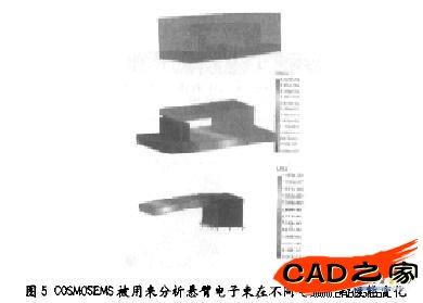 COSMOS靜態分析是使設計避免即時災難或長期故障的一個工具。如圖5的跳水板分析顯示,盡管不大的偏差可以通過一個淺的蝕刻(5微米)和一個薄的Diving Board (1微米)實現,但是移動元件單元中的合成應力將導致早期的故障。設計人員往往希望通過分析幾個排列來找到最佳的狀態。