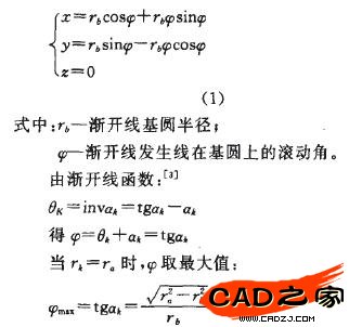 建立如圖1所示的直角坐標系。設漸開線上任一點的坐標為(z,y,x)。漸開線的參數方程可表示為;