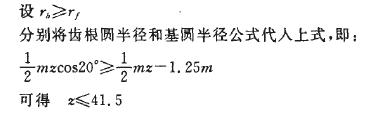 漸開線具有"基圓內無漸開線"的特性,因此當基圓直徑大于或小于齒根圓直徑時齒廓曲線的情況是不一樣的。計算臨界時齒輪的齒數: